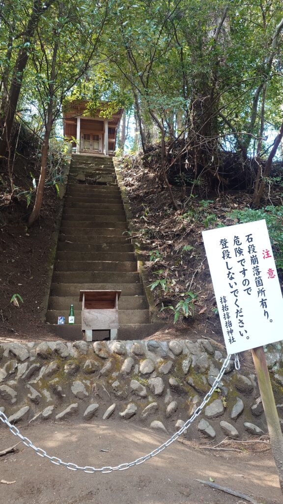*祠に行くための階段は崩れているので、近くには行けません。